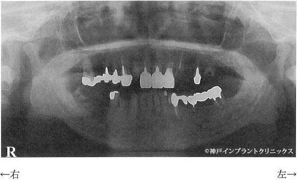 まず下の問題がありますのでそちらが優先的に考えられますが、上についても今後、抜歯、インプラントの撤去、そののち大きな入れ歯を作る必要がでてきます。